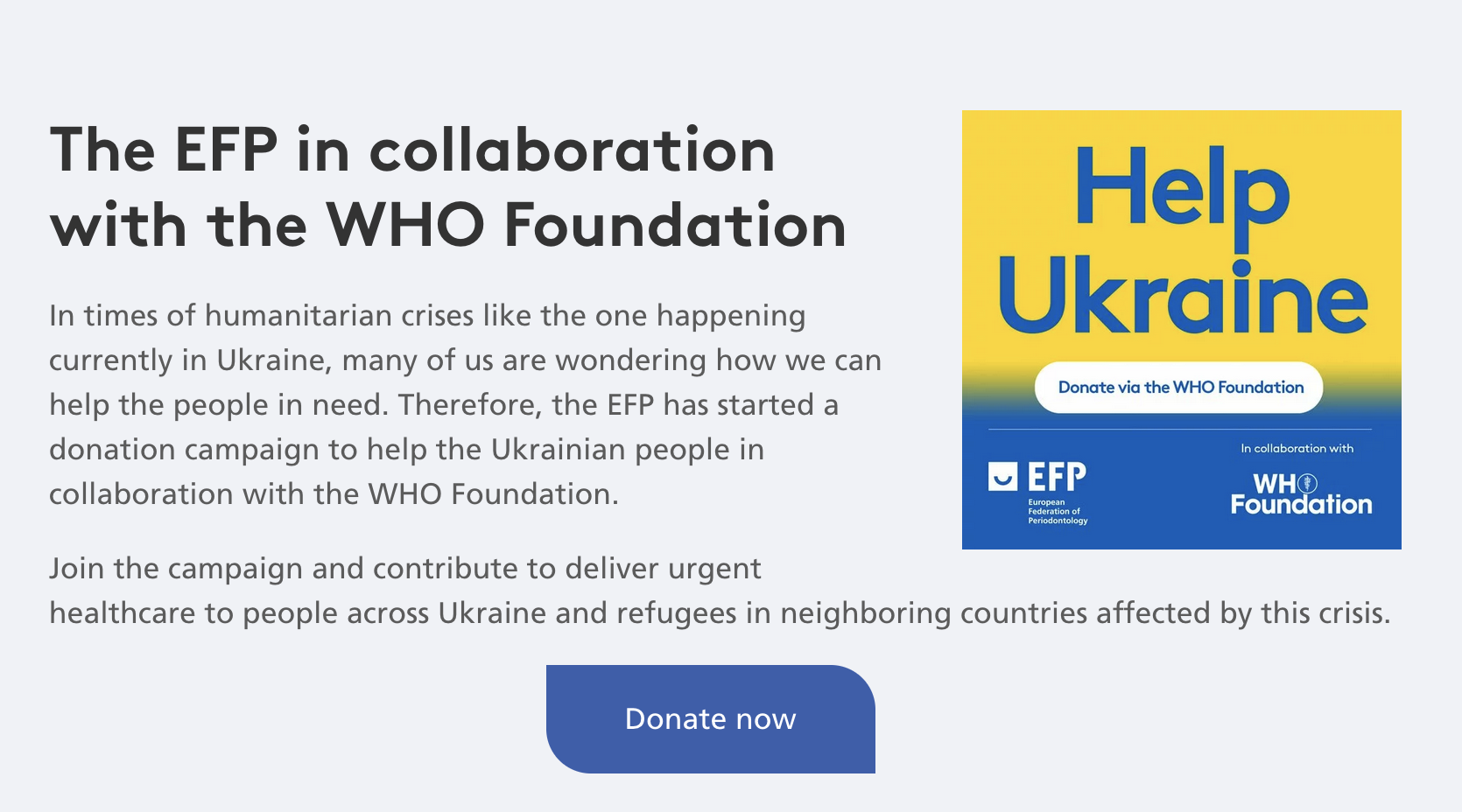 Die EFP hat eine Spendenkampagne gestartet, die darauf abzielt, den Menschen in der Ukraine und den Flüchtlingen des bewaffneten Konflikts dringende medizinische Hilfe zukommen zu lassen. Als eine europäische akademische Organisation im Bereich Gesundheit und Medizin war es für die EFP nur natürlich, zu reagieren und diese humanitäre Aktion zu organisieren. Die EFP hat sich bei diesem Projekt mit der WHO-Stiftung zusammengetan, und hofft, dass ihre Mitglieder Mitglieder diese Initiative annehmen und gemeinsam etwas bewirken können.