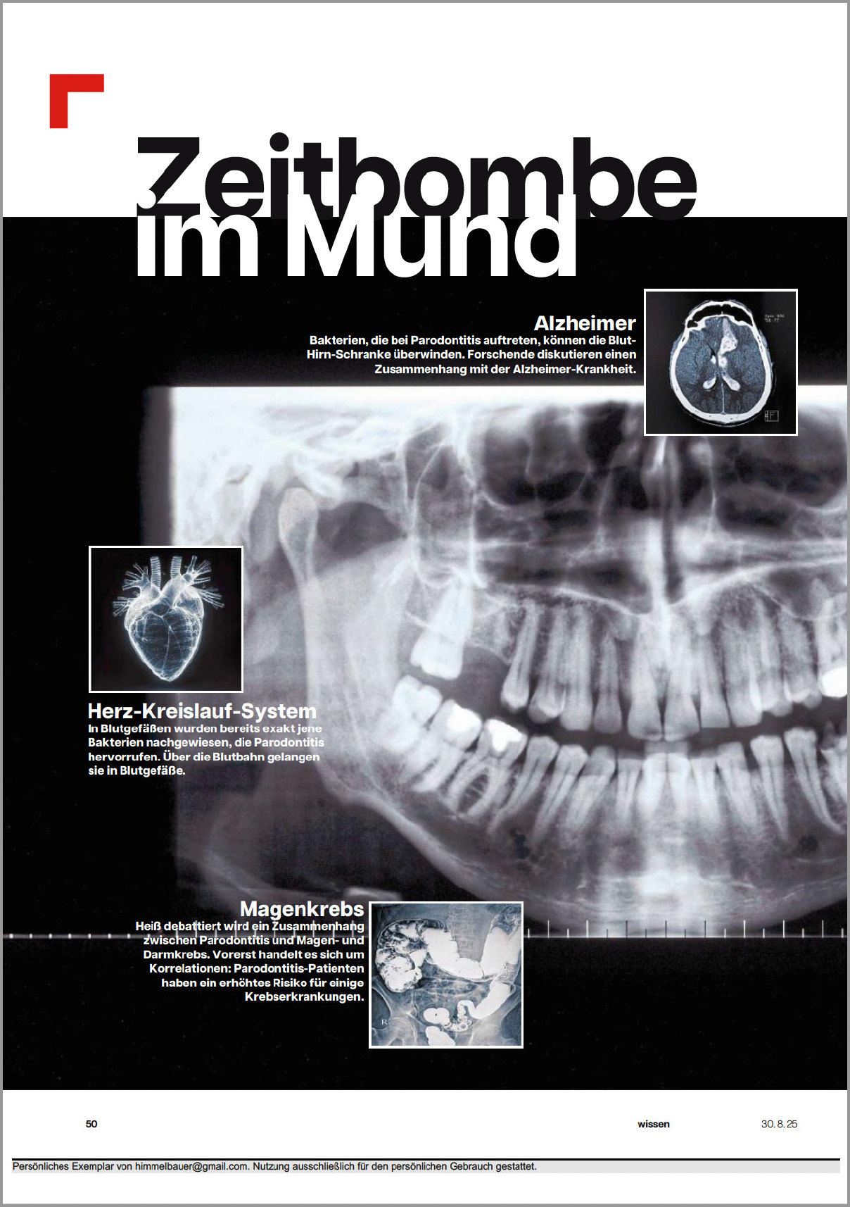 Kranke Zähne können den gesamten Körper schädigen. Wie ENTZÜNDUNGEN im  Mund Herzleiden, Dia­betes und sogar Krebs auslösen können undwie man gegensteuert.